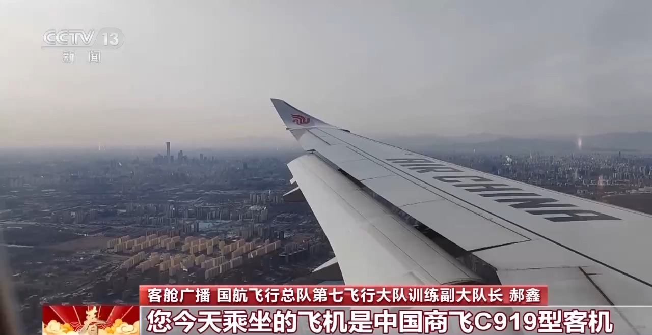 国航飞行总队第七飞行大队训练副大队长 郝鑫:各位旅客大家上午好,我是本次航班的机长,欢迎您乘坐国航CA1389航班,从北京前往长沙,您今天乘坐的飞机是中国商飞C919型客机,我们现在的飞行高度是9800米,预计到达长沙的时间为10:45。
