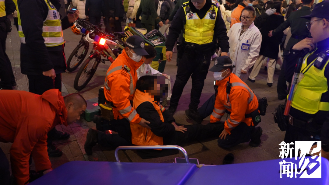 2月19日晚上7点20分,正在南京路步行街巡逻的黄浦公安分局外滩治安派出所民警刘一凡和南京路步行街管理中队民警张杰,突然接到群众求助,说和平饭店门口有一名特保人员晕倒在地,两人立即飞奔至现场,发现倒地人员面色苍白、意识模糊,当即展开初步救助并同步呼叫支援。