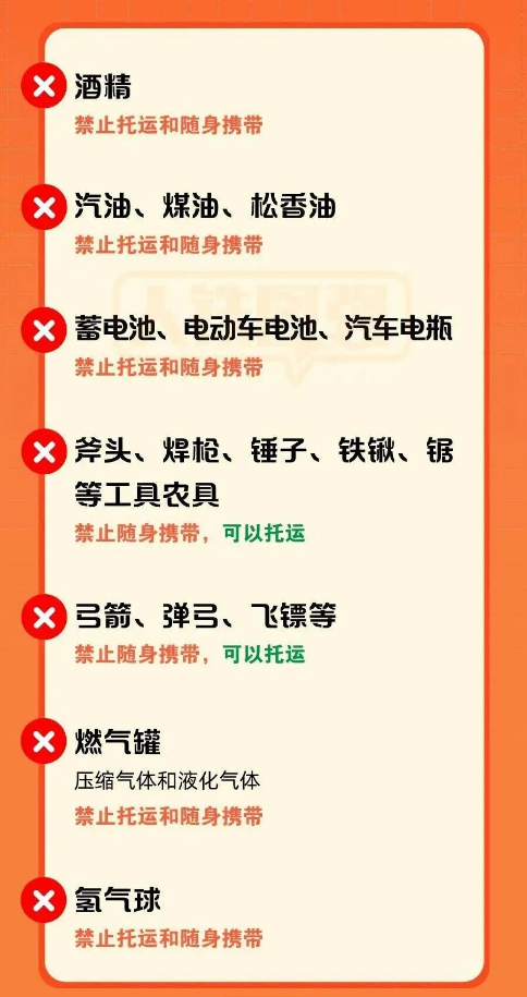 乘火车携带物品指南