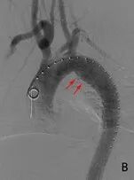 主动脉支架植入后,破口消失,主要血管分支通畅