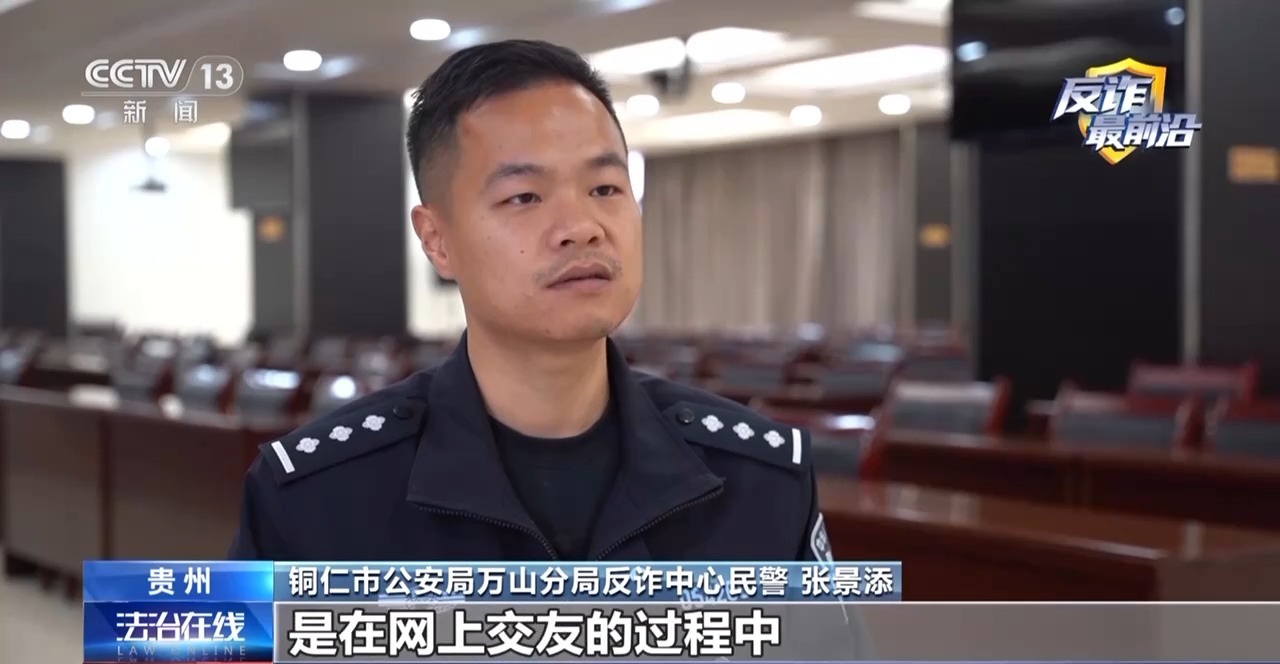 铜仁市公安局万山分局刑侦大队大队长 杨先平:被害人对我们民警非常抵触。被害人和嫌疑人在线上交流并建立恋爱关系,时长已有数月,嫌疑人通过心理建设,让被害人对他的“军官”身份深信不疑,不能够正确辨别这个恋爱关系。