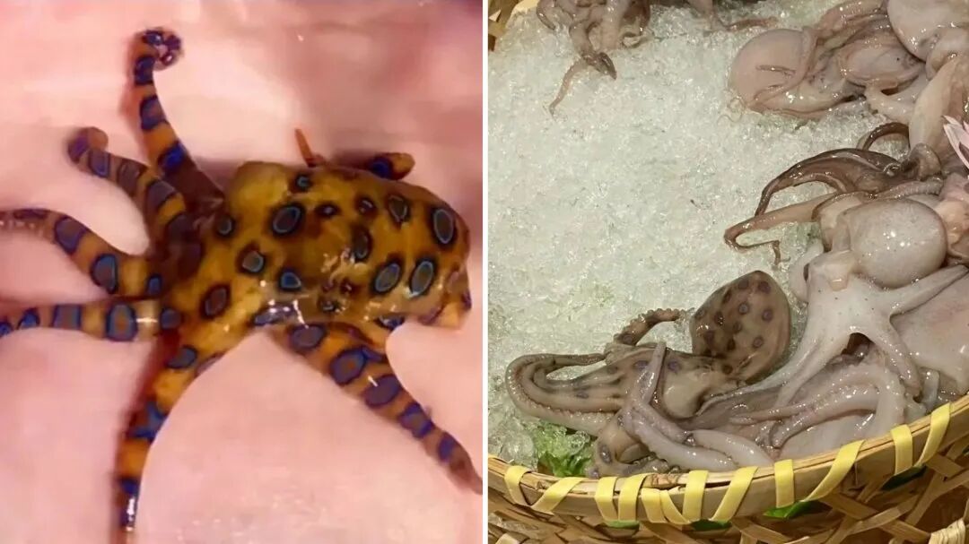 据介绍,蓝环章鱼,隶属于章鱼科,又称蓝圈章鱼、豹纹章鱼,因身上鲜艳的蓝环而得名,是一种很小的章鱼品种,臂跨不超过15厘米。它的体型只有高尔夫球大小,体表为黄褐色,是目前已知的最毒海洋生物之一,与箱型水母并称为两种最毒海洋生物,目前医学上还没有解毒的办法加以预防。