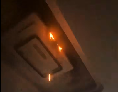 一居民卧室顶灯失火