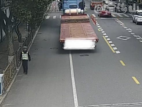 就这样,警车开道、车尾指挥,一路小心翼翼、步步稳妥,整整护送重型半挂车前行两公里,终于将车辆引导至开阔的安全区域,帮助司机顺利完成掉头,彻底化解了这场窘境。