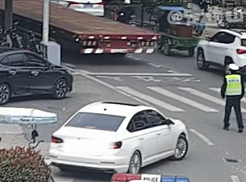舟山交警接到报警后,第一时间赶赴现场,面对误入窄路的半挂车,民警没有一句责备话语,更没有开具一张罚单,反而轻声安抚慌乱的司机:“别着急,我们来帮您。”