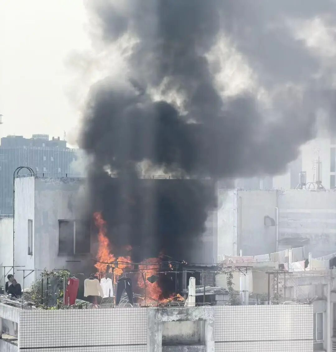 楼顶杂物起火 现场黑烟滚滚
