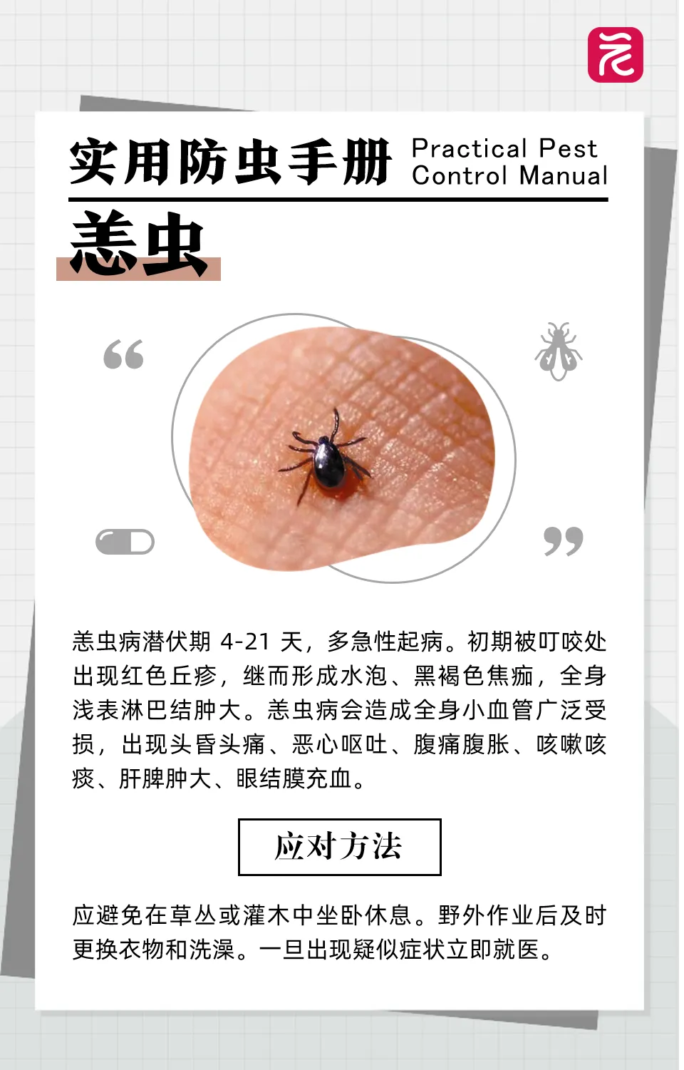 收营后:立刻检查腰窝、腋下、腹股沟、膝盖后侧等;露营后,若出现发热、皮疹、淋巴结肿大、焦痂,主动告诉医生“草地暴露史”,要求排查恙虫病。