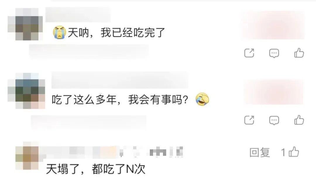 社交平台上,有网友表示“吃了这么多年,我会有事吗?”“天塌了,都吃了N次”。