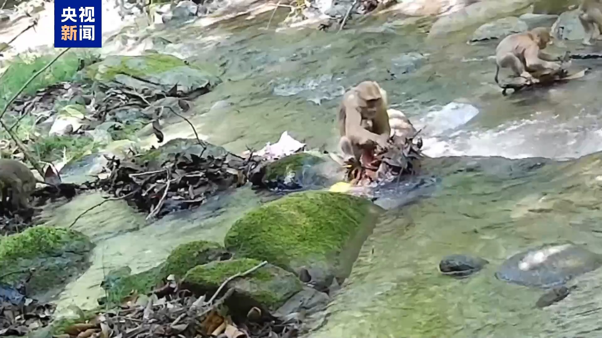 画面中,一群北豚尾猴结伴穿行在浅水河域翘尾觅食嬉戏,个体健壮、神态自然,完整呈现出该物种在原生境中的自然生存状态。经鉴定,此次监测到的猴群数量较多、群体结构稳定,是耿马片区生态环境持续向好的直观体现。
