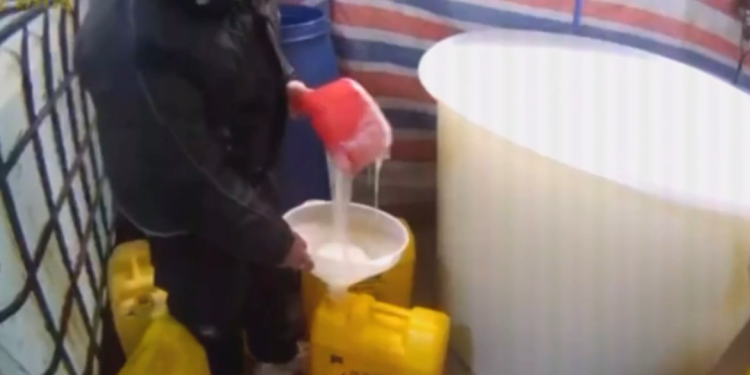 经查,欧某某在广州的家中藏着一个隐蔽的制假小作坊,民警现场查获大量冒牌洗洁精成品,还有各类制假工具和包装材料。