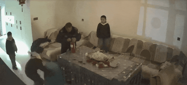 并让两个弟弟移开桌上可燃物