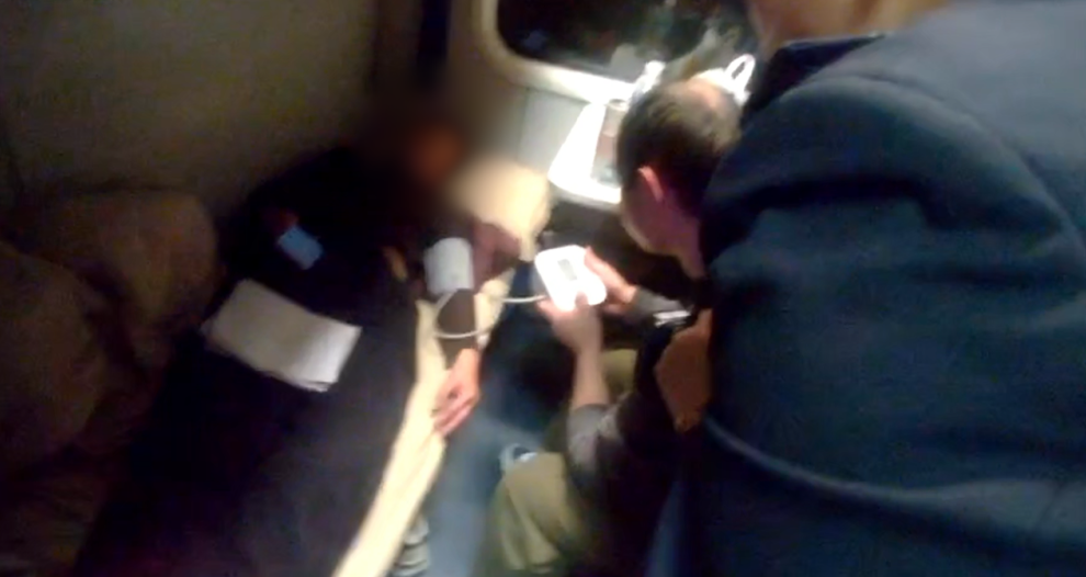 3月17日4时32分,K59次列车长桂鹏在列车巡视时,在11号车厢发现一名旅客坐在卧铺边,身体微躬、表情痛苦,立即上前询问。
