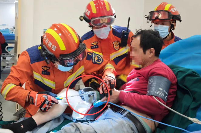 一男子在进行切割作业时不慎受伤
