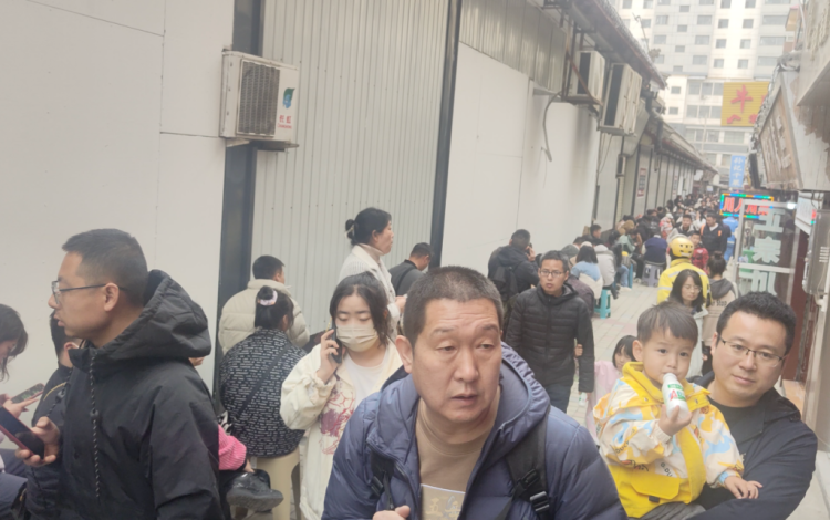 2024年3月,“四合院”东侧小巷子里等待吃麻辣烫的游客,排的队伍一眼望不到头。