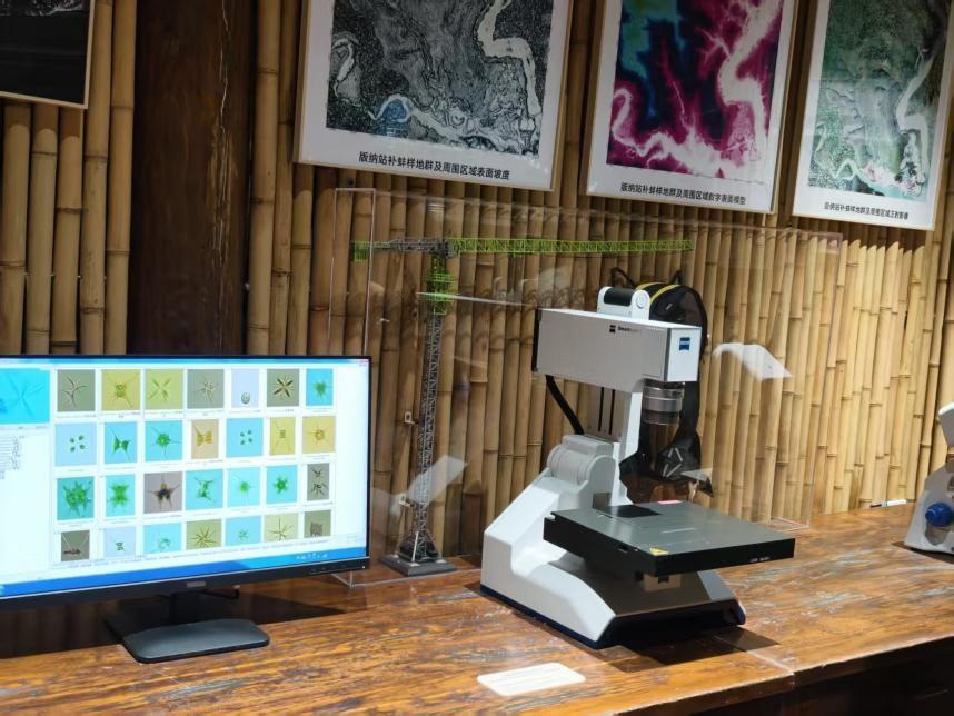 值得关注的是,展区还特别模拟了中国科学院西双版纳热带雨林生态系统研究站森林塔吊观测点。“展项的原型塔吊位于西双版纳补蚌生态站,塔高80米,是目前世界最高的森林观测平台之一。观众如同站在塔吊上观赏西双版纳的雨林景色。”聂婷华说。据介绍,森林塔吊是一个科研设备,跟平时在工地上看到的塔吊外形比较类似。科研人员走进吊篮,可以从地面升到高空,近距离观察雨林垂直分布的情况,看到一些平时看不到的附生植物以及爬到高空的动物。