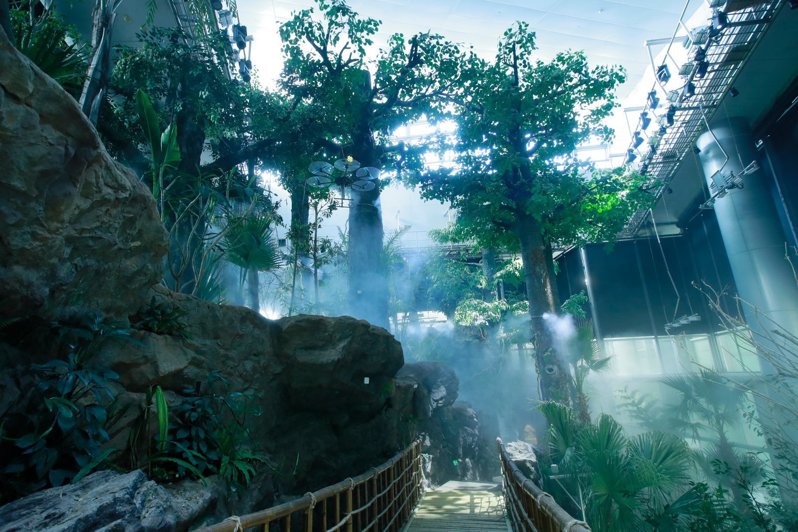 作为此次升级的重头戏,“雨林秘境”展区展示面积超3000平方米,是科技馆十大常设展区中面积最大的展区。展区由原“生物万象”历经两年闭馆改造而成,以中国西双版纳热带雨林为原型,设置雨林纵览、魅力雨林、雨林之家、雨林故事四大主题区,通过沉浸式环境营造、活体植物与仿真场景结合、互动科考装置等方式,把热带雨林“搬”进都市。
