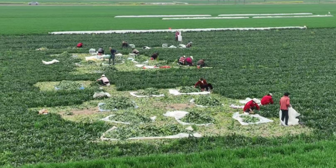 基地的菠菜根据其生长节点采用水肥一体化、无人机防控等现代化手段种植,产量高、品质好。田间地头,来自当地及周边村庄的50多名村民正有条不紊地忙碌着,大家分工明确、协作默契,收割、装袋、过磅等一系列动作一气呵成,一旁的运输车已整装待发,确保鲜度直达加工企业。