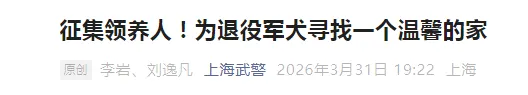 @不忘初心:我是上海退役武警,以前有多年养狗经验,可惜!现在住高层建筑,不适合养宠物!如果现在还在农村住,非常愿意申请领养老战友。