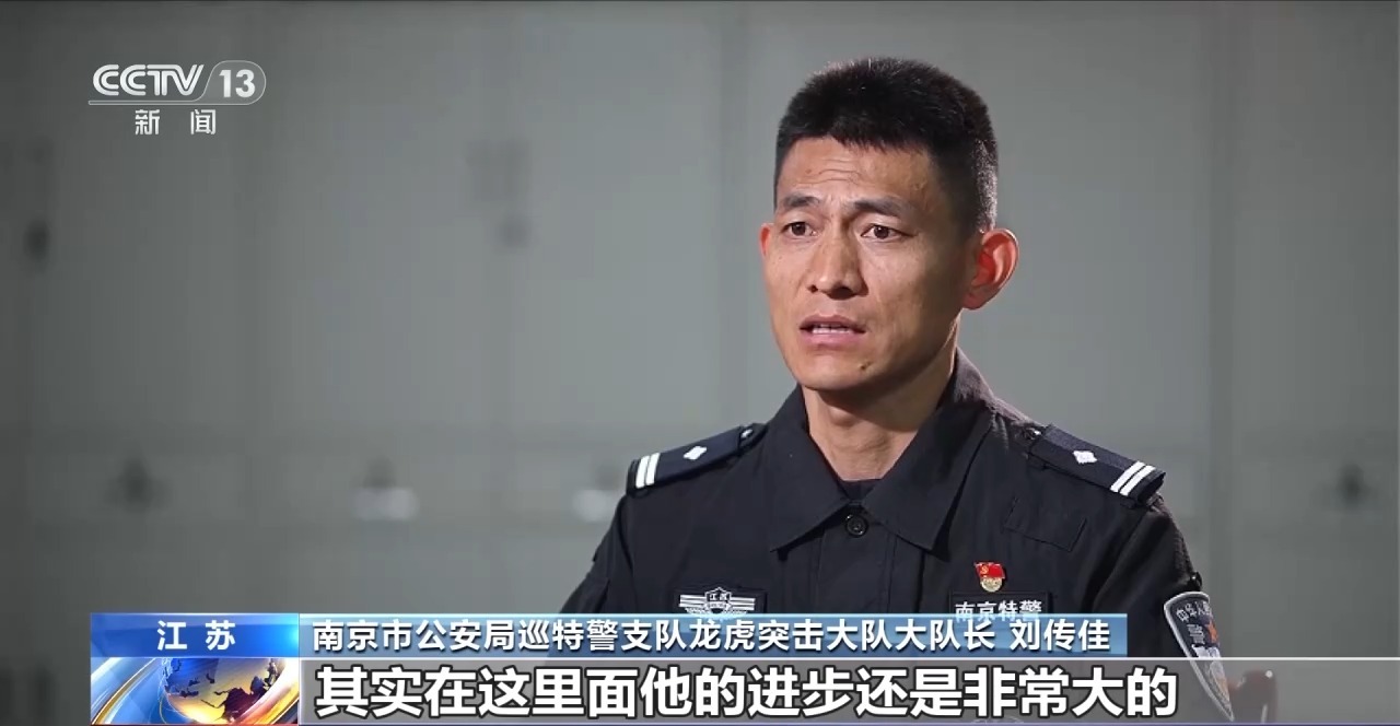 南京市公安局巡特警支队龙虎突击大队大队长 刘传佳:后面我们在跟他聊天的过程当中得知,他自己心里面暗暗地下定了决心,就是其他队员能做的,其实他也能做到,而且还要比别人做得更好。