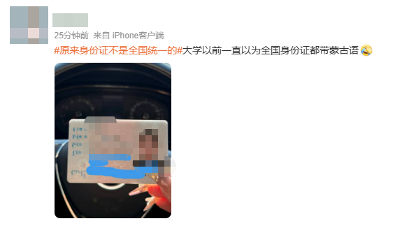 话题“原来身份证不是全国统一的”