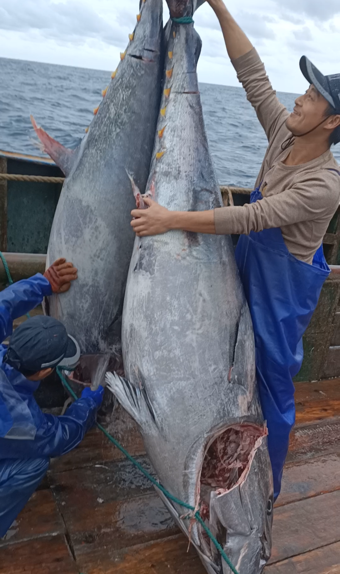 正在海上作业的船老大范吉通,与记者视频连线时难掩激动。“我捕鱼三十多年,常年在东海作业,还是头一回见到这么大的金枪鱼,而且一次就遇上了两条。”