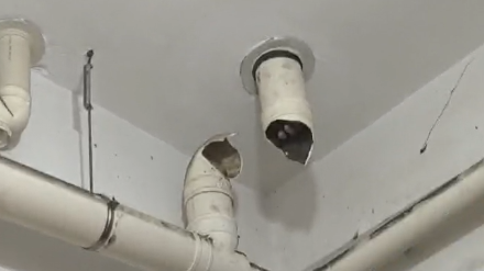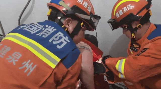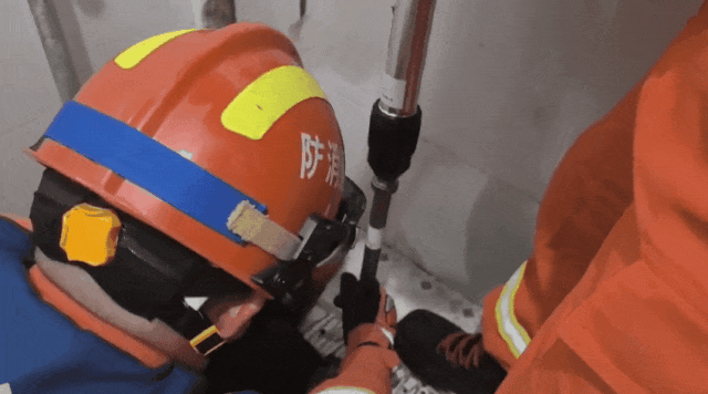 消防员将楼下相应位置的下水管道拆解开。图源:泉州消防