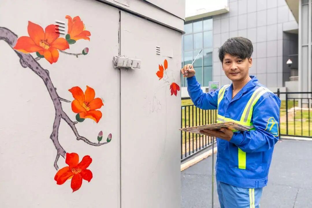 近日,一位在广州街头电箱上作画的环卫工人惊艳全网,在他的画笔之下,活力满满的醒狮、热烈的木棉花、灿烂的向日葵跃然于电箱之上。