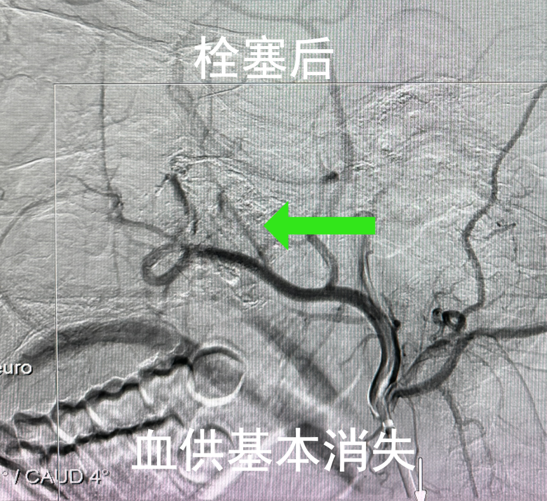 手术当天,王医生穿着30斤的铅衣,在介入导管室精准操作,将微导管从股动脉送入,逐一锁定肿瘤供血动脉并注入栓塞材料,直到肿瘤的异常染色完全消退,成功切断“营养供应”。