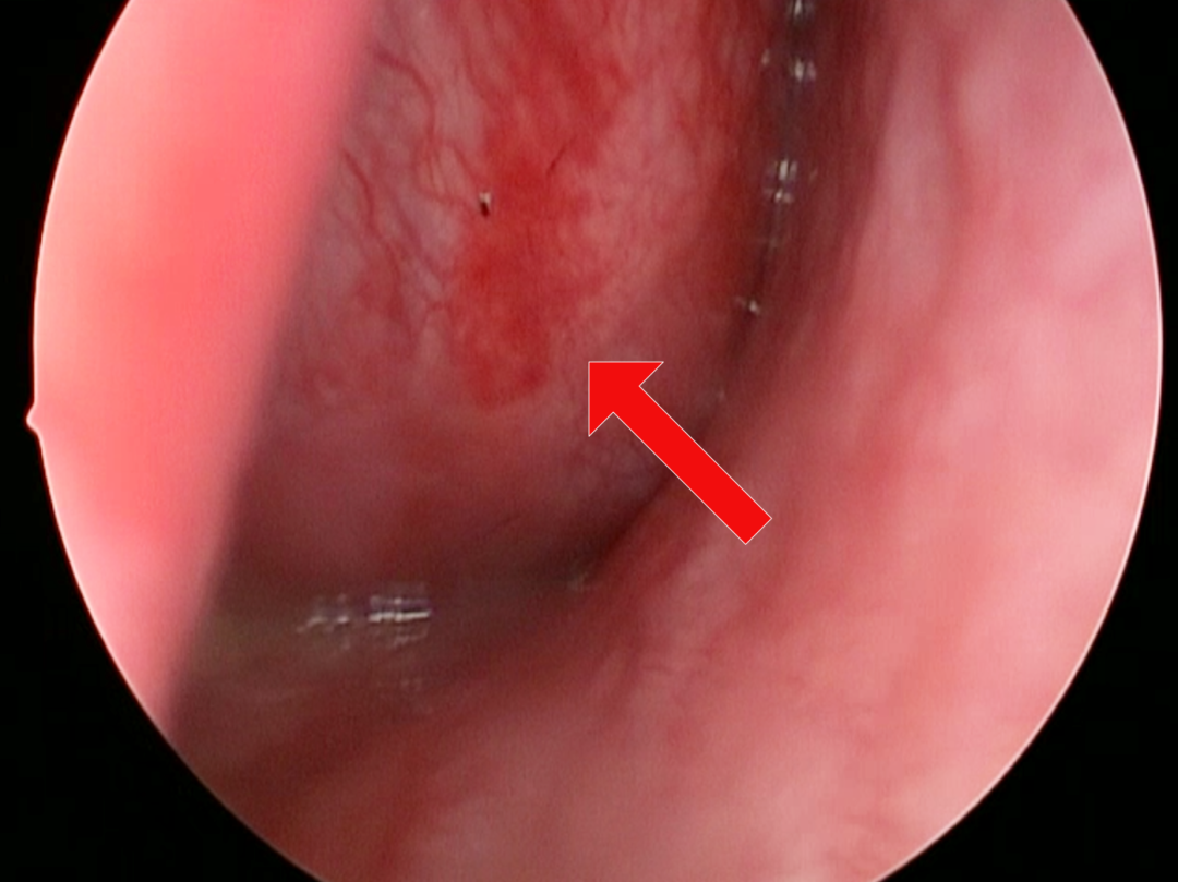 鼻内镜下,滕医生却有惊人的发现。小杰右侧鼻咽部,一个紫红色、表面光滑的肿物清晰可见,血管纹路分明,还随着呼吸微微搏动。他认为,小杰这并不是鼻炎,而是鼻咽纤维血管瘤。