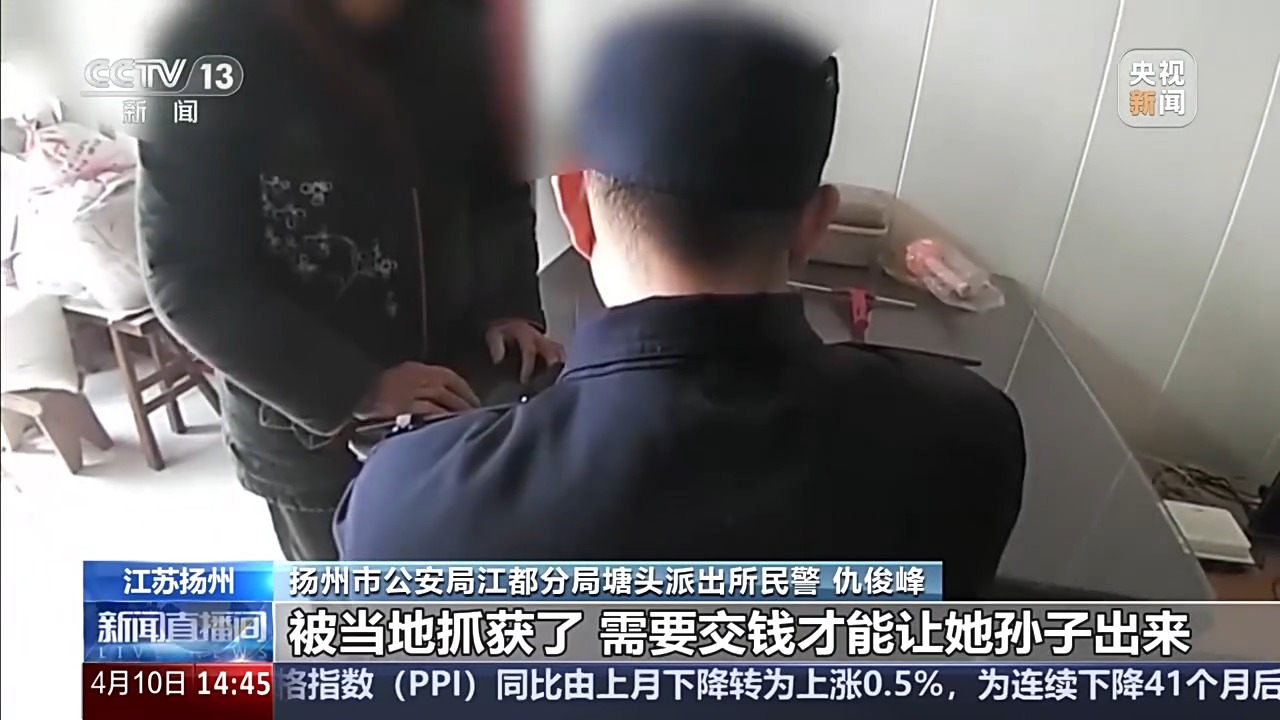 扬州市公安局江都分局塘头派出所民警 仇俊峰:说她的孙子因为涉嫌违法犯罪的事情被当地抓获了,需要交钱才能让她孙子出来,交保证金之类的。