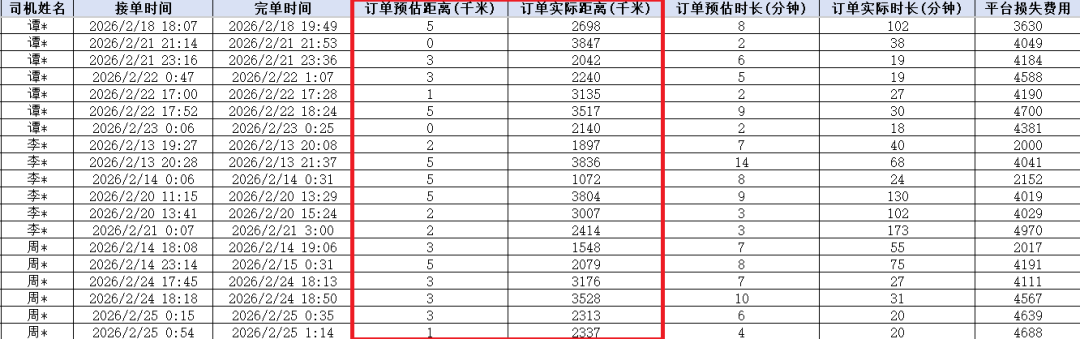 图为网约车平台审计时发现异常订单