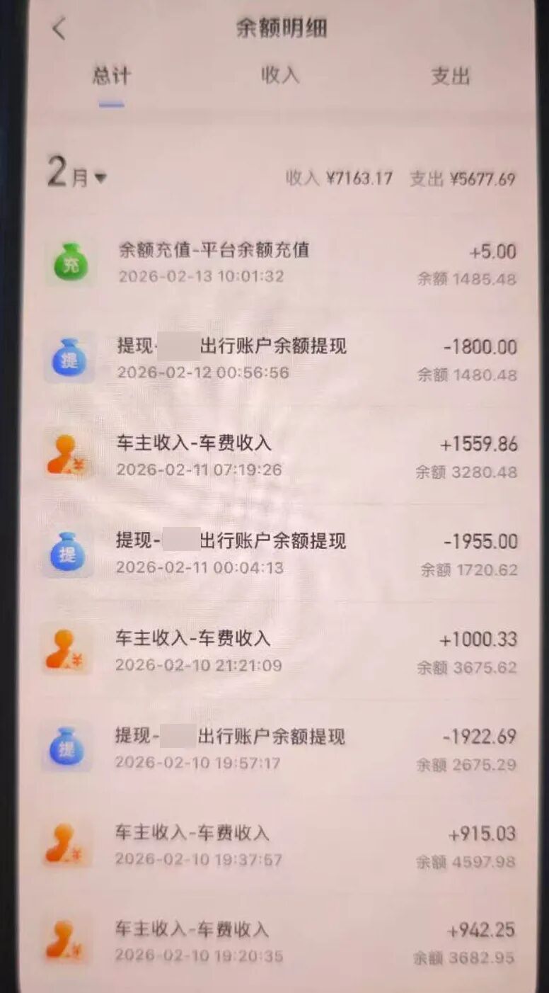 图为司机提取金额记录