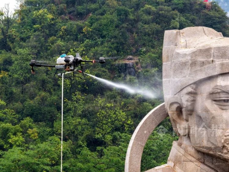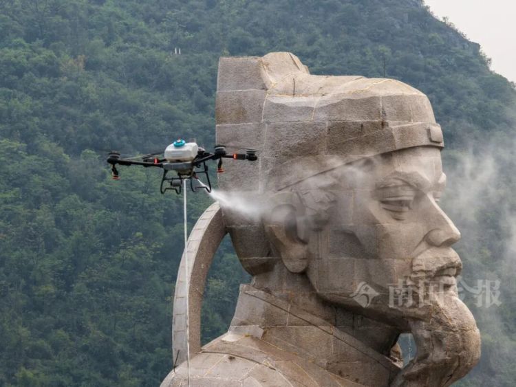 鱼峰区消防救援局相关负责人介绍,经过现场勘查,举高类消防车确实无法抵达上方平台实施作业,于是他们向上级市消防救援局协调了灭火救援无人机,通过下方水罐消防车的远程加压,利用水带向平台上方的灭火救援无人机供水,安全高效地处置了位于雕像上的马蜂窝,也应广大网友的呼声,给柳州“老市长”柳宗元“掏掏耳朵,洗洗澡”。