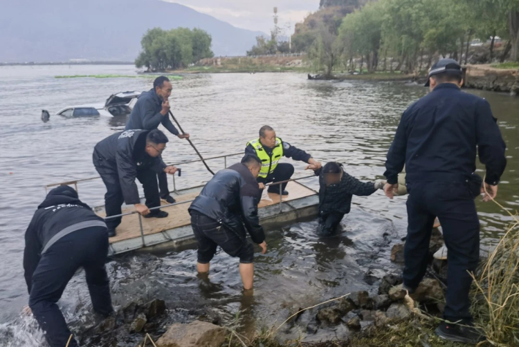 近日,云南大理群众报警称一辆车不慎开入洱海,情况万分危急。市公安局交通管理大队双廊中队接警后,民警火速出警,联动辖区派出所和消防部门协同开展救援处置。