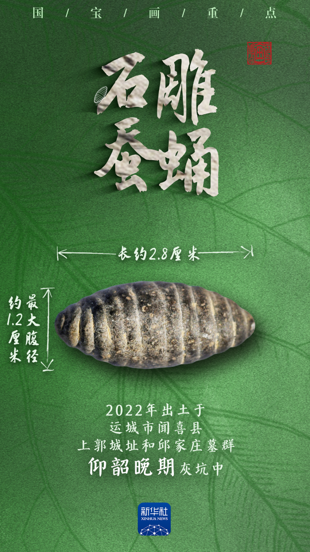 也出土一枚石雕蚕蛹