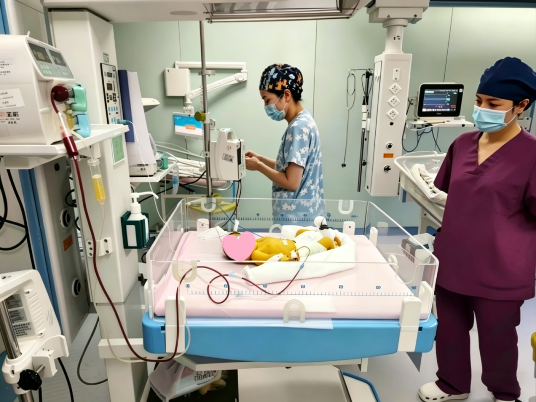 新生儿科、输血科、检验科紧密协作,全程紧盯监护仪上宝宝的各项生命体征,顺利完成换血治疗。