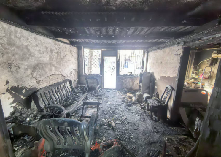 2.火灾荷载大,家中物品摆放杂乱,同时存放多个罐装杀虫剂,导致火势蔓延迅速。