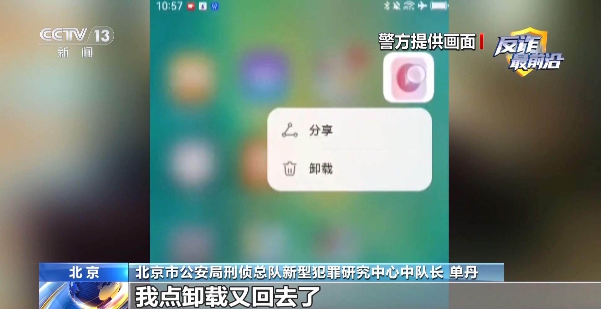 北京市公安局刑侦总队新型犯罪研究中心中队长 单丹:比如自己的屏幕乱跳,莫名其妙弹出弹窗,想关都关不掉。其实这些根本不是普通的色情软件,而是被骗子植入了木马病毒的陷阱。
