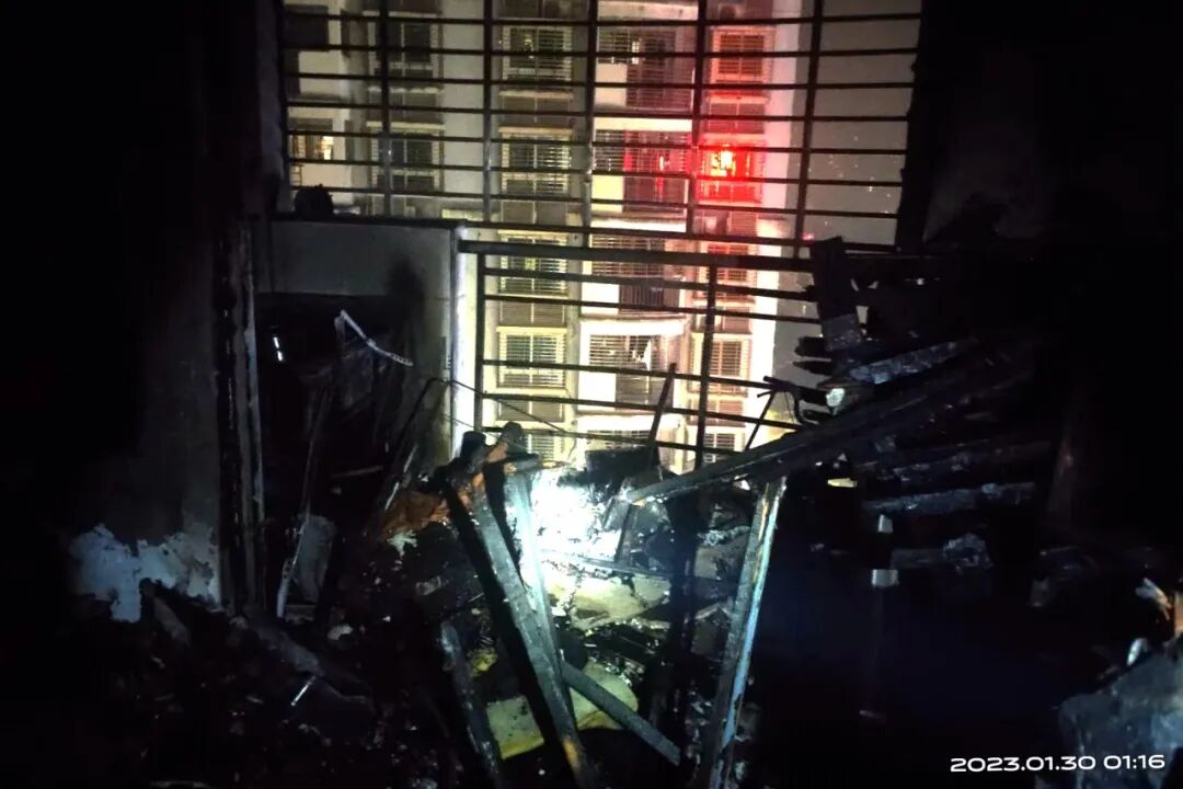 ▲火势从阳台蔓延至客厅内。图源:泉州消防