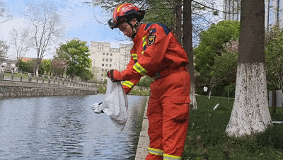 无独有偶,4月7日下午,杭州拱墅区一小区的花坛内也出现蛇类,严重威胁周边居民安全。消防员划定警戒区,仅用数分钟便将蛇成功捕获并装入防护袋。之后,消防员也将蛇带至远离居民区的适宜栖息地放归。