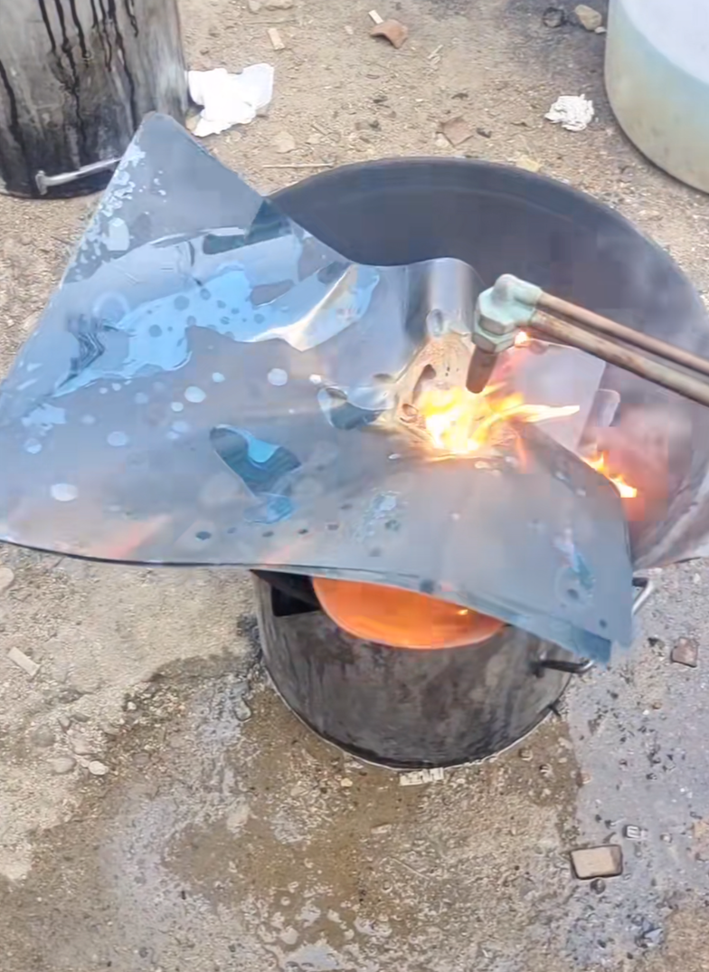 △博主演示焚烧提炼银的过程