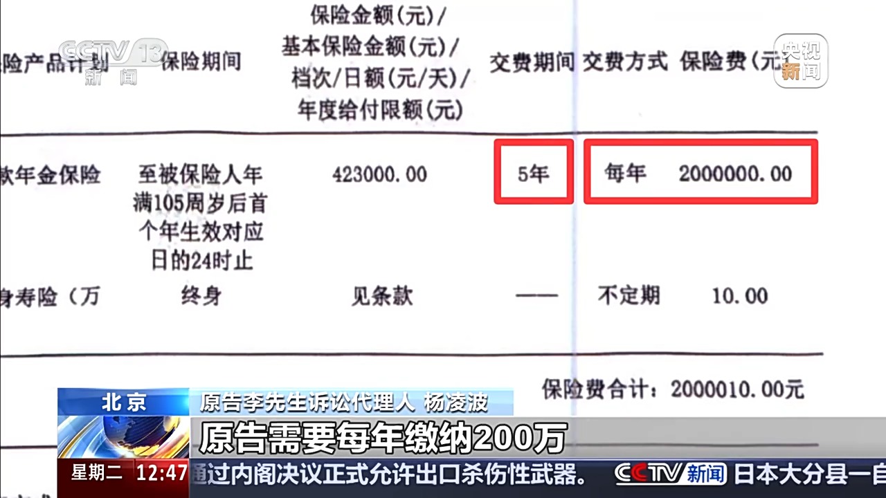 2024年6月30日,这家保险公司的业务员告知李先生,“利率优惠仅剩最后一天”,于是李先生签订了这份保险合同,并在对方的指导下录制了购买保险相关的知情告知视频。首年缴纳保费200万元,五年计划总投入达1000万元。