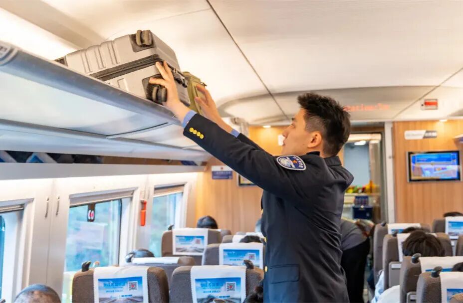 从那以后,这个不服输的上海小伙儿把每一趟出乘任务都作为实战考场,巡车时眼观六路、耳听八方,遇到拿不准的问题就追着列车长请教。从规范安放行李到耐心解答问询,再到悉心照顾重点旅客,他反复打磨服务细节,力求精益求精,逐渐成长为青年业务骨干。