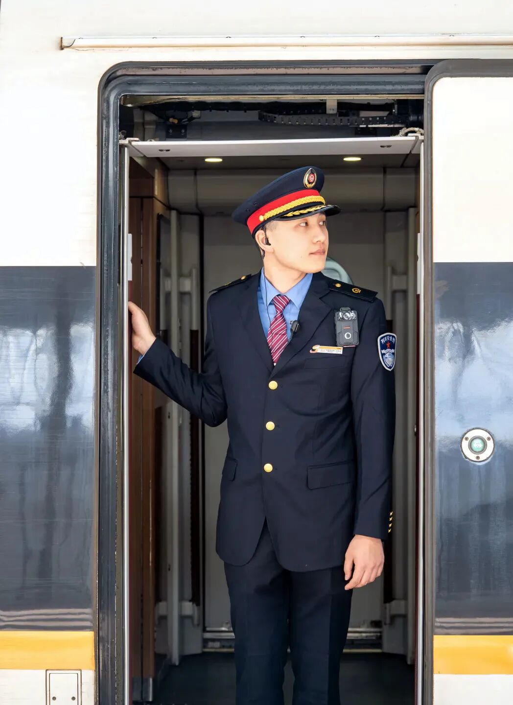 这位高铁列车员名叫沈家荣,是中国铁路上海局集团有限公司上海客运段的一名“00后”列车员。2025年12月,他凭借扎实的业务能力成功入选京沪高铁标杆列车“东方号”品牌列车乘务组。