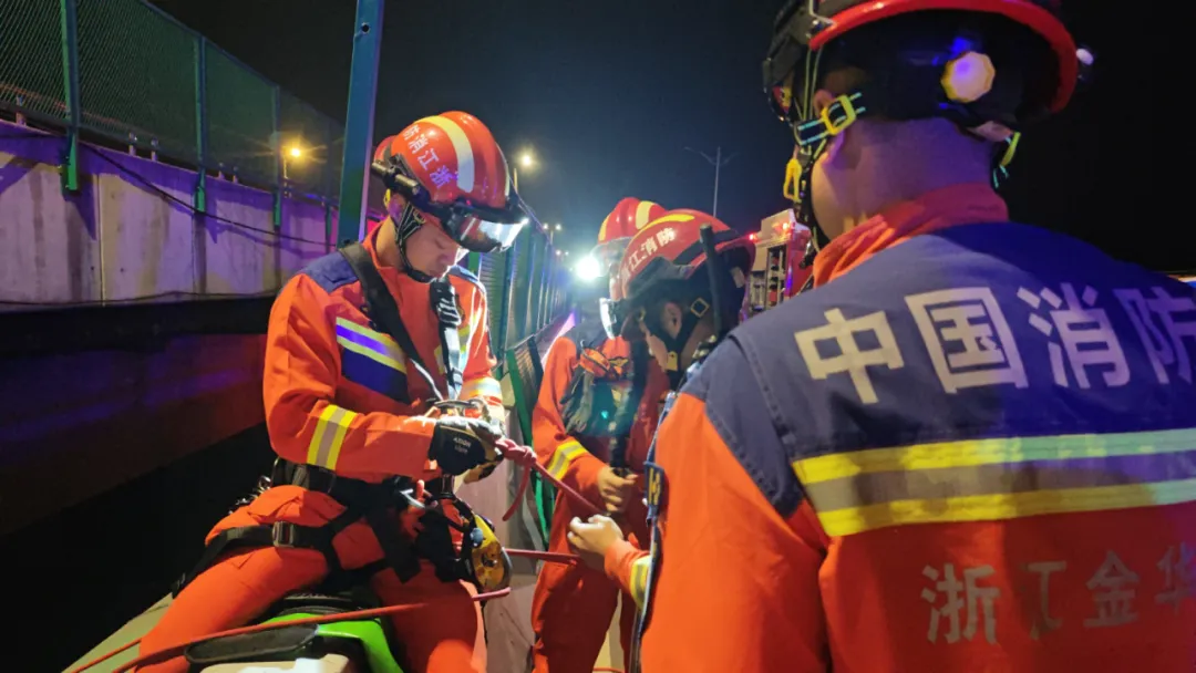 消防员将受伤女子转移至快艇。图源:浙江消防