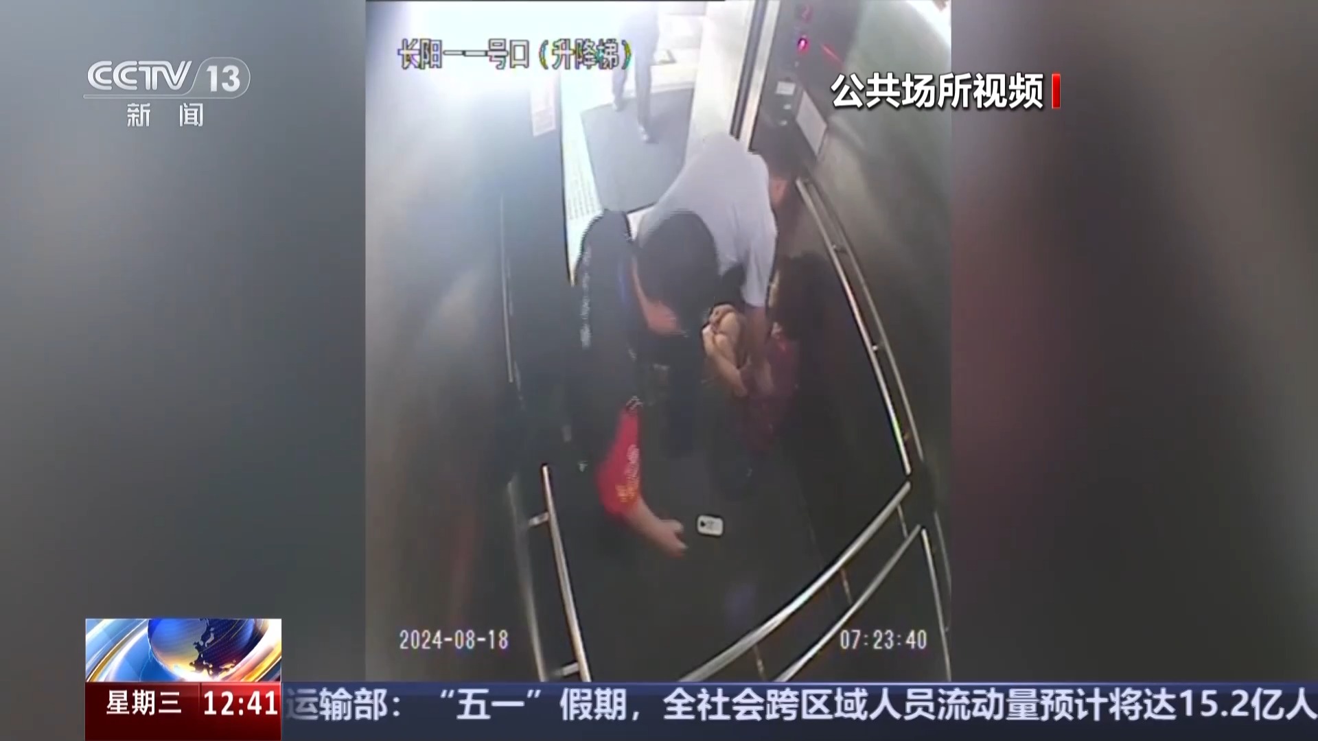 画面中升降直梯的位置是在北京市房山区的地铁长阳站。可以看到,在一层通往二层进站大厅的直梯门口靠近地面处,设置有一块挡水板。周女士在地铁站搭乘电梯时,右脚被挡水板绊倒,摔倒在轿厢内。