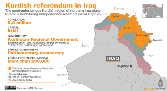 当地时间9月25日,伊拉克北部库尔德自治区(库区)正式开启独立公投。此前,伊拉克政府以及土耳其、伊朗、叙利亚等国都曾对此表示反对。