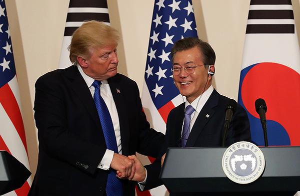 美国总统特朗普和韩国总统文在寅。视觉中国 资料图按照计划,韩国总统文在寅将于本周五(4月27日)和朝鲜领导人金正恩举行双边首脑会谈。而此前特朗普也表示可以考虑与金正恩在五月底或六月初会面。