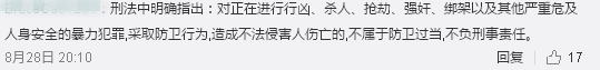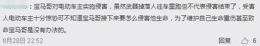 有网友认为,刘某某动刀在先,骑电动自行车的男子是正当防卫。