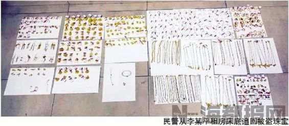 大年初七开工,泉州浦西万达广场周六福珠宝店却遭贼了,店内柜台里价值超百万元的黄金钻石等被洗劫一空。不过,好消息很快传来,泉州警方在接警后10个小时,就在市区一理发店将犯罪嫌疑人李某平抓获。因时间短,被盗的500余件首饰还来不及出手,绝大部分赃物都在其位于市区霞淮街的租房床底下搜出。